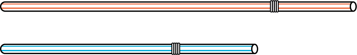 The straw on the top is longer than the straw on the bottom.
